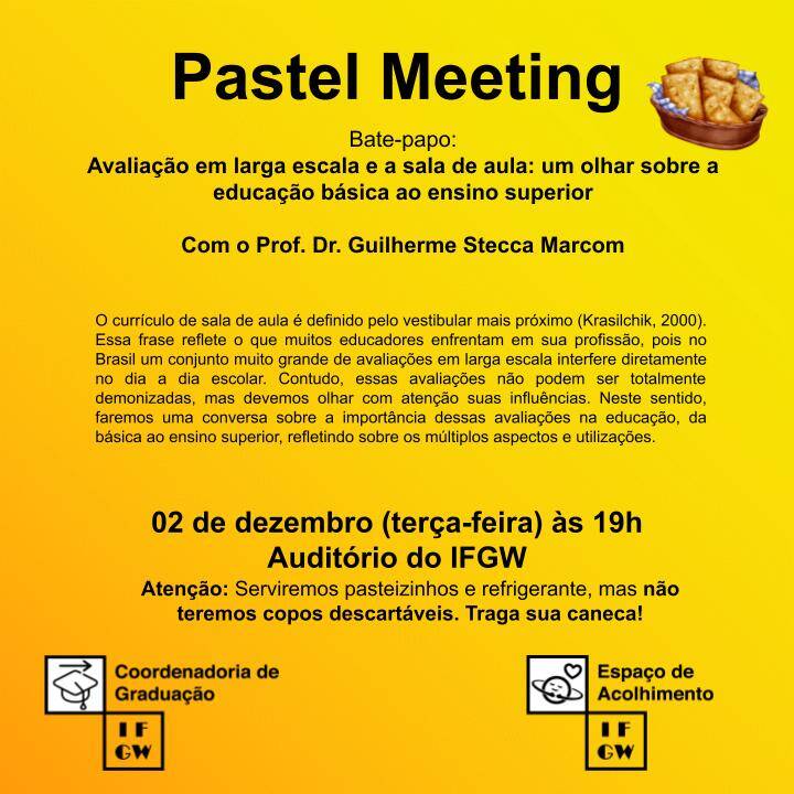 Pastel Meeting – 02/12/2025 - Avaliação em larga escala e a sala de aula: um olhar sobre a educação básica ao ensino superior